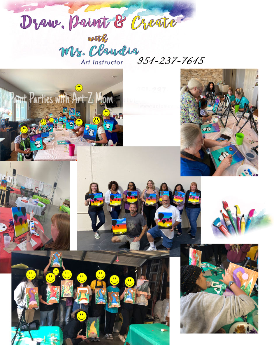Join me for fun step by step painting and create some colorful memories. No creative or artistic skills are needed. Painting step by step is about having fun and creating a complete work of art you'll be proud of. Perfect for kid's parties or adult sip and paint. Face painting can also be an added bonus. If you would like a more in depth lesson, I also offer paint sessions that are more private with smaller groups. Call me or text me for availability and package prices.